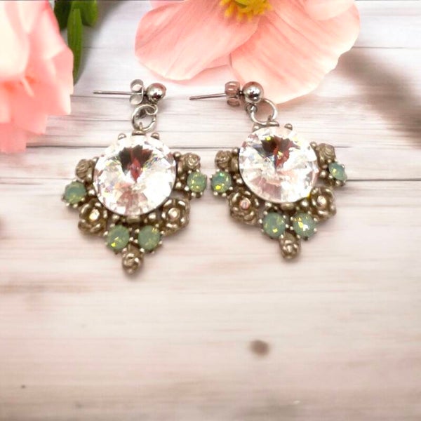 Oorbellen van Swarovski kristallen met bloemen bewerking (lichtgroen)