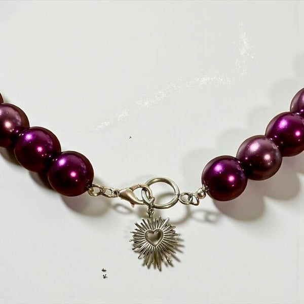 Voeg een vleugje kleur en klasse toe aan je outfit met deze prachtige handgemaakte ketting. De schitterende paarse glaskralen van 16 mm vangen het licht op een prachtige manier, waardoor de ketting subtiel maar toch opvallend glanst.
